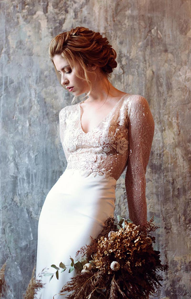 This gown looks like a structured, tailored wedding dress but by using stretch laces and lining fabrics, these dresses have flexibility in the fit and will accommodate many different body shapes.Because of the flexibility of the fit, this should reduce the amount of alteration work required to tailor the dress to your liking. Hem length from the waist to hem is 117cm / 46 inches. Please keep this in mind based on your height and the height of your wedding shoes. If you choose a firm fit, this could affect the hem to sit shorter.